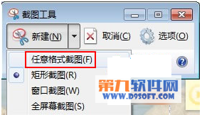 2、啟用截圖工具,單擊新建右側的下拉箭頭,選擇任意格式截圖。