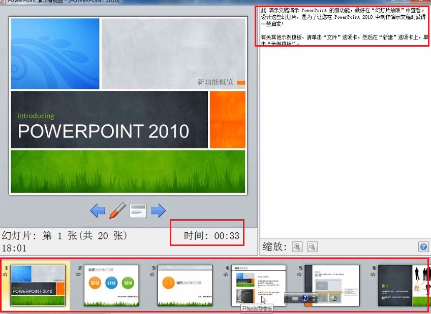 6. 選擇完成以后按 F5 放映,可以看到進入了演示者視圖,除了可以看到幻燈片之外還可以看到當前的備注信息和計時信息,除此之外還可以看到下一張的幻燈片內容以便我們提前做好準備,而在大屏幕上只會顯示幻燈片的內容。