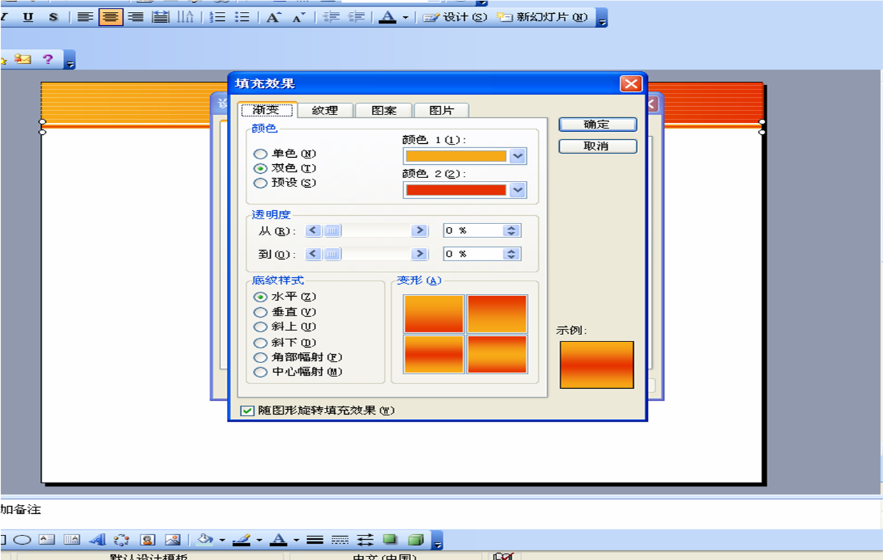 雙擊矩形,填充顏色,雙色(找兩個自己看著舒服的),垂直: