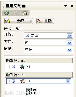 4)接著再添加 d1的退出自定義動畫。選定d1自身為觸發器,確定后,d1 的進入和退出就設置完了,如圖7
