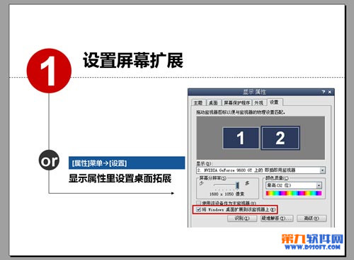 首先,鏈接投影后,將屏幕拓展到投影用的監視器(不是屏幕復制),筆記本有對應的快捷鍵。