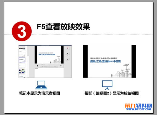 按F5放映后,兩個屏幕的效果如下圖顯示。