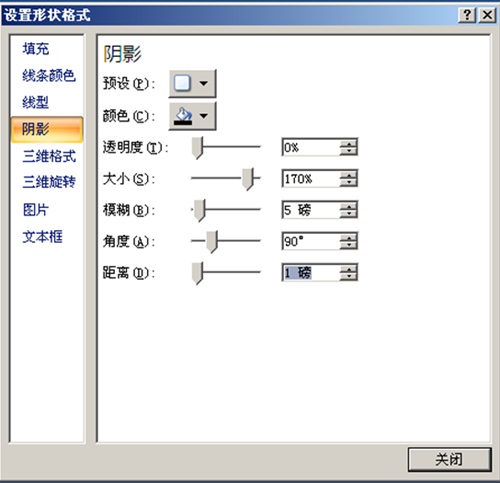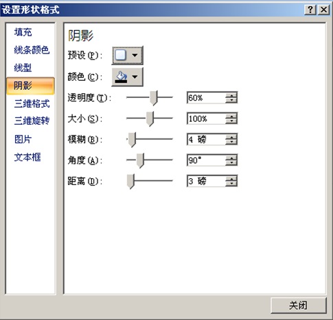 2、添加陰影效果。( 透明度:60%,大小:100%,模糊:4磅,角度:90,距離:3磅)