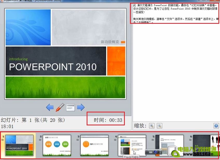 6. 選擇完成以后按 F5 放映,可以看到進入了演示者視圖,除了可以看到幻燈片之外還可以看到當前的備注信息和計時信息,除此之外還可以看到下一張的幻燈片內容以便我們提前做好準備,而在大屏幕上只會顯示幻燈片的內容。