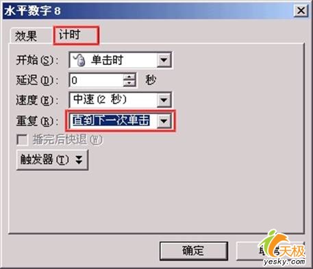 選擇“計時”,從“重復”中選擇“直到下一次單擊”, 然后單擊“確定”退出。再播放時,只要我們不點鼠標,蜜蜂就會一直跳下去了。