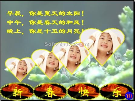 至此,賀卡制作完成(如圖10),趕快按下F5功能鍵,邊聽音樂邊欣賞賀卡吧。