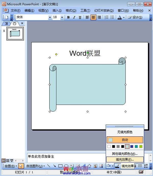 ①首先在PowerPoint2003中插入自選圖形,如下圖所示。
