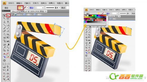 相反,在AI中先進(jìn)行簡(jiǎn)單編輯后再拖入PPT倒是個(gè)不錯(cuò)的選擇。比如我們打開(kāi)一個(gè)AI文件,選擇“直接選取”工具,即工具欄中那個(gè)空心的箭頭,用這個(gè)工具可以非常方便地選中任何需要修改的細(xì)小部分,然后再進(jìn)行相應(yīng)修改。下面的例子,就是使用“直接選取”工具對(duì)顏色進(jìn)行修改。