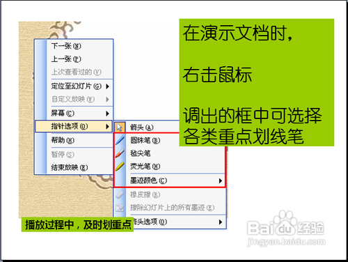 快速為幻燈片劃重點。幻燈片在放映的時候,鼠標一般是空閑的,如果想在這個時候標注或者劃重點,該功能就可以實現。