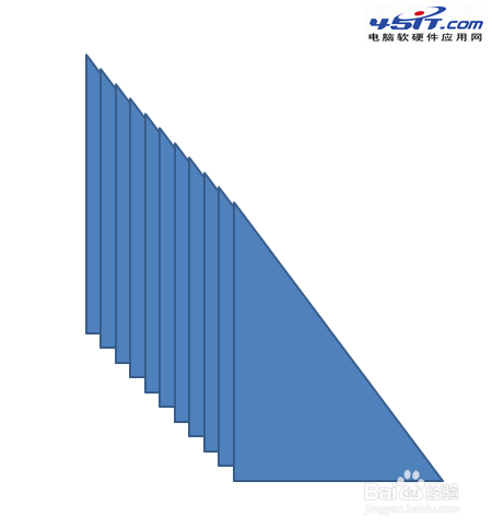2、把畫出的三角形復制若干份,具體多少份要看具體情況,當然復制的份數越多,動畫越細膩。在這里我復制了11份,因為我化三角形寬度是6厘米,我想讓它寬度每次縮短0.5厘米,11次寬度正好縮短為0.