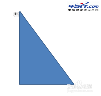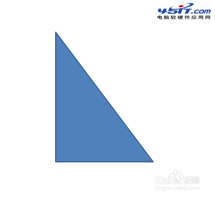 1、我們以一個三角形沿其一條邊旋轉為例,向大家演示這個方法。首先在幻燈片編輯區畫出一個三角形。如圖所示: