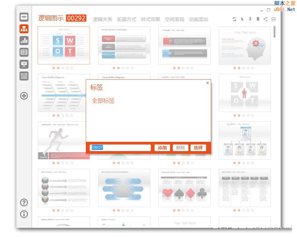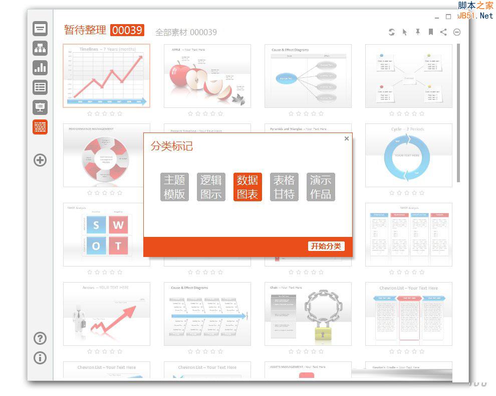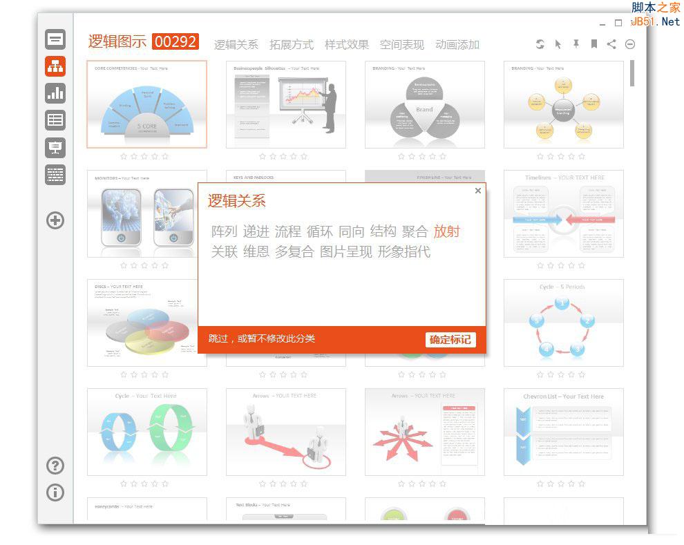 進入主分類后可對PPT素材進行快速標簽,以【邏輯圖示】為例,步驟如下:
