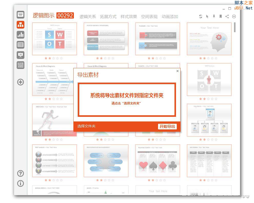 可將已經【分類標記】的PPT素材【導出】分享給其他用戶,用戶將【導出】的PPT素材再次導入到PPT素材夾軟件時可按照原素材分類狀態自動分類