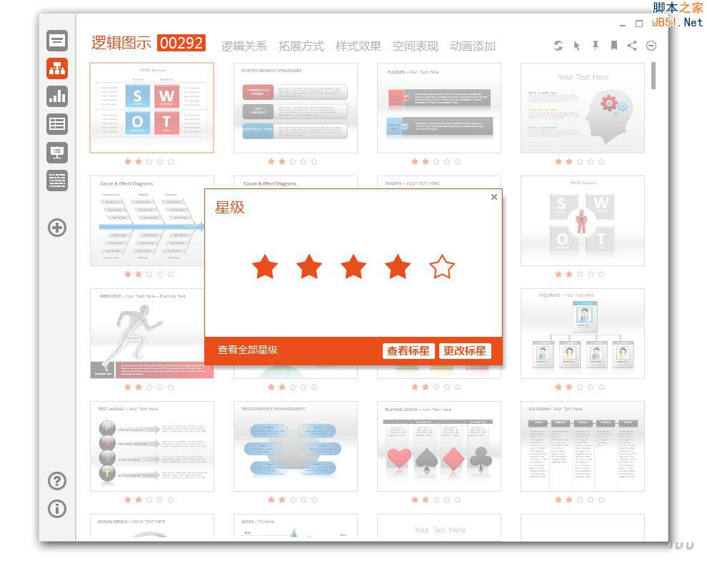 2,點擊PPT素材下方的【五角星】圖標,可在出現的對話框中給已選中的PPT素材添加或更改【星級】