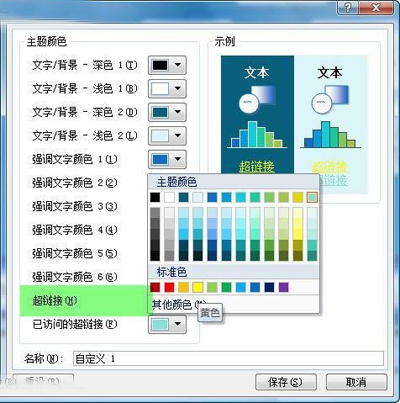 在“新建主題顏色”對話框中,需要設置【超鏈接】和【訪問過的鏈接】兩個項目。