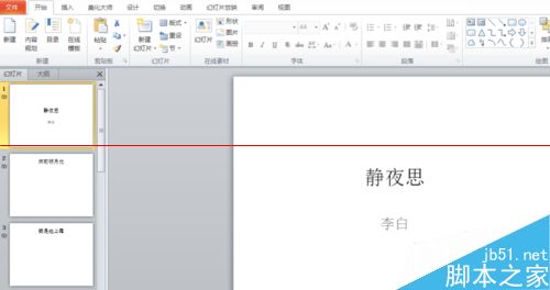 4、可在幻燈片里輸入內容,這里僅以李白靜夜思詩詞為例