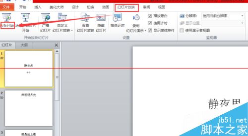 6、接下來需要觀看效果的話點擊“幻燈片放映”,然后點擊“從頭開始”即可看到。
