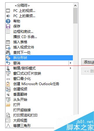 4、找到下列四個(gè)命令,形狀拆分,形狀剪除,形狀相交,形狀組合,向右側(cè)“新建組”中添加,添加完成后顯示為右圖所示。或者直接在功能區(qū)右鍵中選中“自定義功能區(qū)”