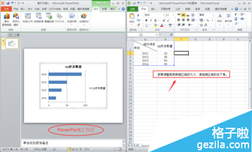 選擇條形圖后,自動彈出excel工作區,可以創建并輸入表格數據,或者直接打開一個表格,選擇數據區域。根據提示,通過拉伸調節選擇需要的數據區域。