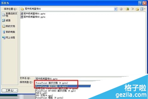 依舊是點開左上角“文件”—“另存為”—修改文件名,選擇保存類型為“pptx”