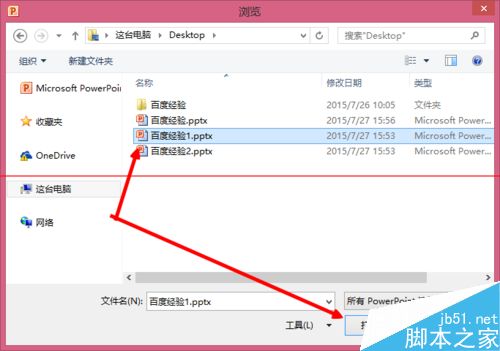 5、找到“百度經(jīng)驗(yàn)1”,點(diǎn)擊“打開”,選擇“保留原格式”,雙擊幻燈片即可出現(xiàn)在“百度經(jīng)驗(yàn)”幻燈片中