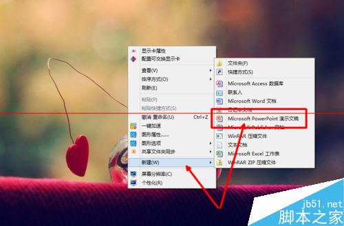 2、點(diǎn)擊右鍵,選擇“新建”,點(diǎn)擊新建“PowerPoint演示文檔”,并命名為“百度經(jīng)驗(yàn)”