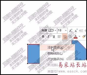 3、這里箭頭顯示出頂點來。接著,鼠標放在如下圖所示的位置上,右擊,再選擇:添加頂點。