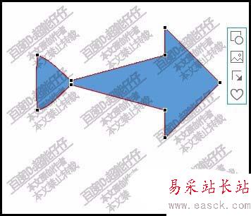 6、接著,鼠標點擊魚尾兩個頂點,顯示出手柄來,再調節一下,使之有一點弧度。