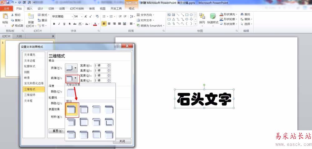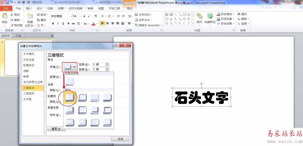 5、選擇三維格式,設置字體頂端