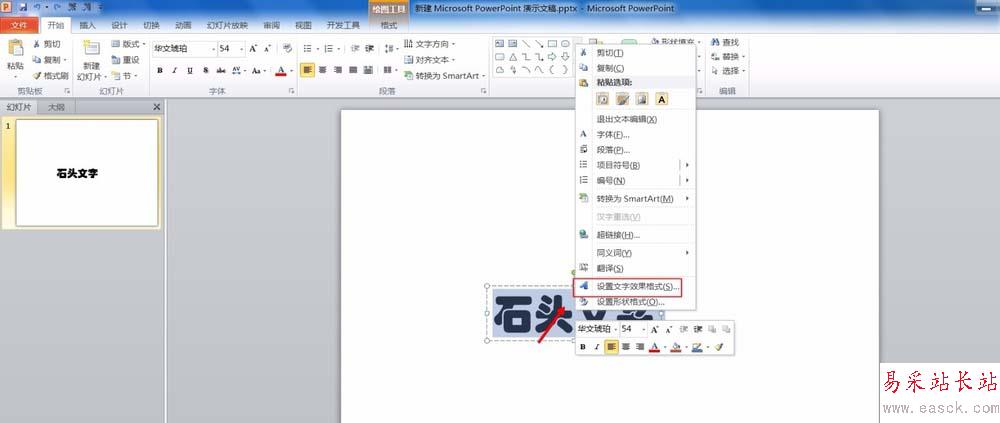 3、在字體上面右擊,選擇文字效果設置