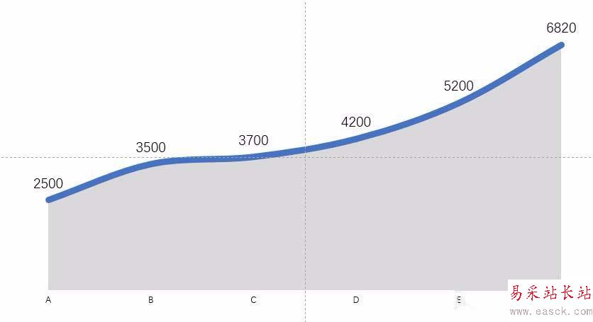 7、這樣一個基本的效果圖就得到了。如果適當做一些更改,那么這種圖的效果會更好。比如,把線條和面積設(shè)置為漸變,給背景填充一種深色,就能得到更具質(zhì)感的數(shù)據(jù)圖。如下圖所示。