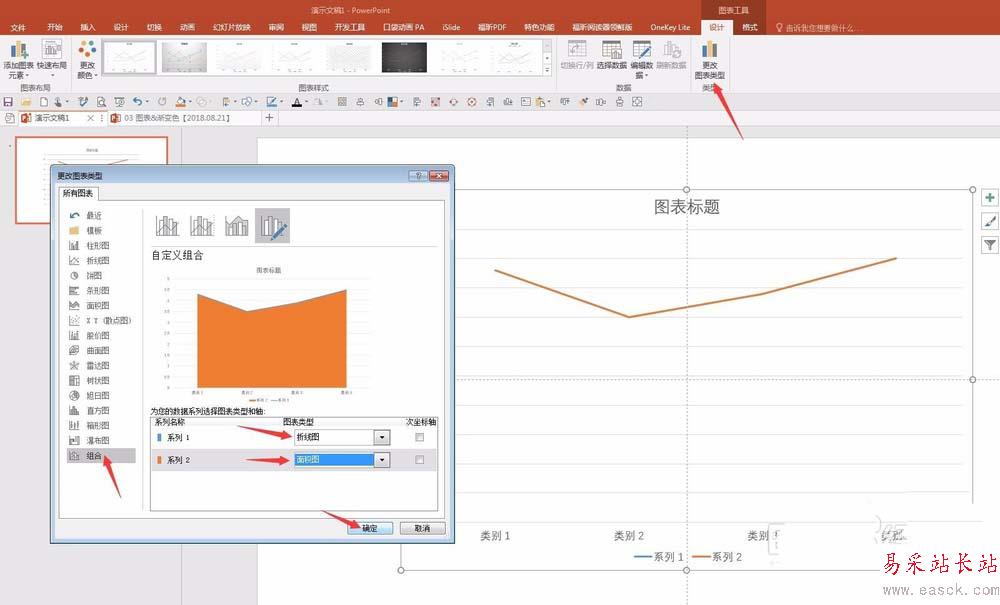 PPT怎么制作面積與柱狀圖混搭的組合圖表?