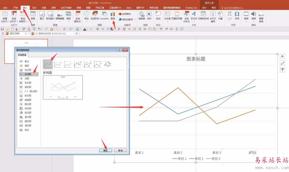 1、插入數(shù)據(jù)圖,類型選擇普通折線圖。