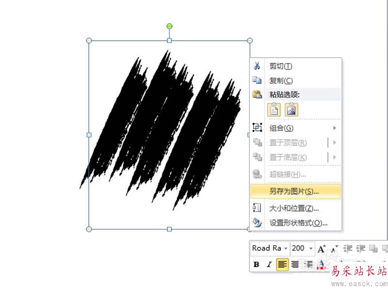 6、調(diào)整整體的位置和大小,右鍵單擊從下拉菜單中選擇圖片另存為命令,將其保存即可。