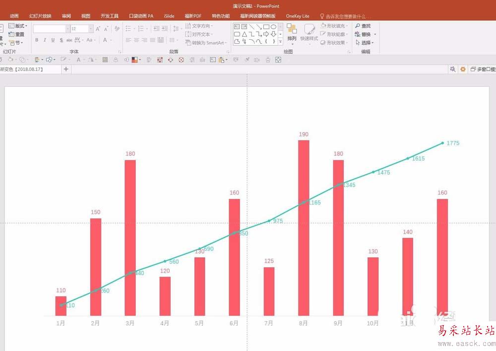 以上就是ppt制作帶累計數據走勢的柱形數據圖的教程,希望大家喜歡,請繼續關注錯新站長站。
