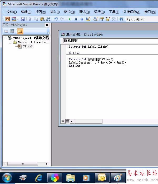 7、輸入Label.Caption = 1 + Int(100* Rnd())