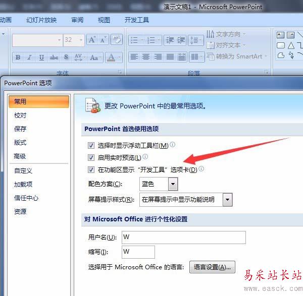2、勾選【在功能區顯示“開發工具”選項卡】,確定。