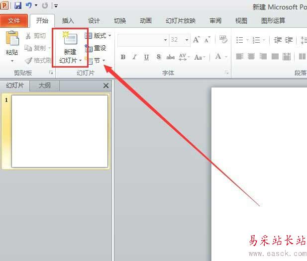 1、打開ppt2010,并新建幻燈片,如下圖所示。