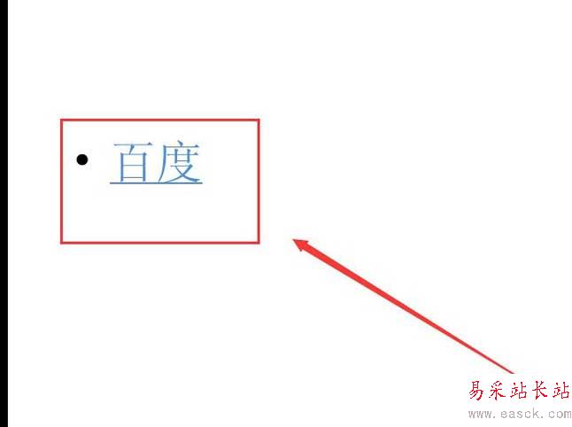 2、在頁面上輸入“百度”,然后把百度漢字做成網頁的超鏈接。具體過程小編不在此贅述。如下圖就是小編做好的一個超鏈接,大家可以看到超鏈接默認的是藍色。