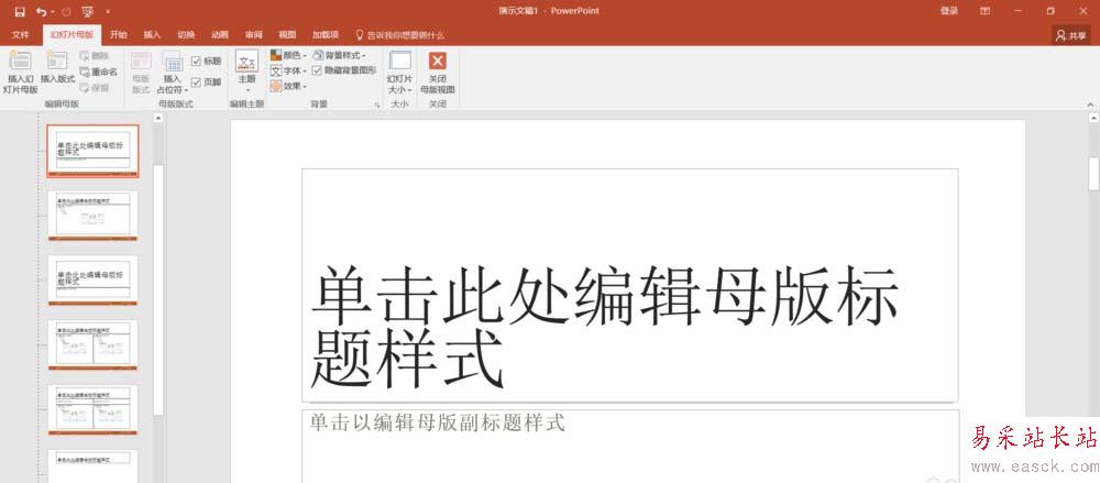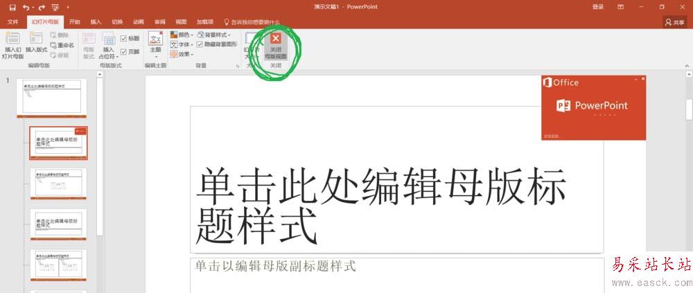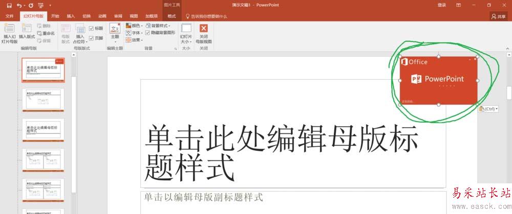 5、將圖片調(diào)整到合適的位置,然后關(guān)閉母版。