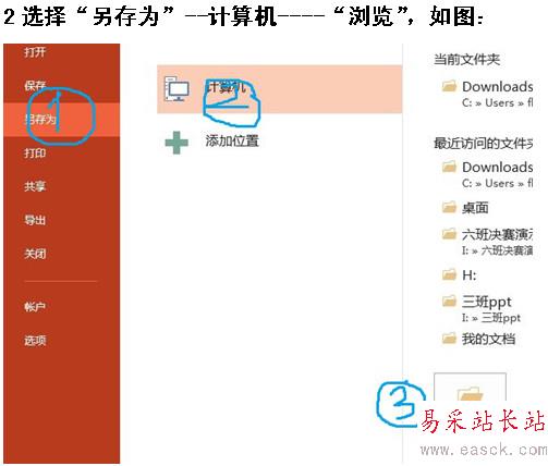 2、選擇“另存為”--計算機----“瀏覽”,如圖: