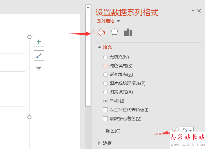 5、修改全部柱形圖的顏色,選擇填充,在顏色選項選擇自己中意的顏色。