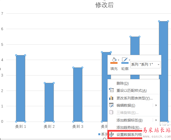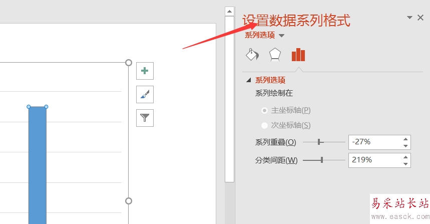 4、點擊圖表,如下圖之后鼠標右擊,在彈出來的對話框中選擇“設(shè)置數(shù)據(jù)系列格式”,得到設(shè)置數(shù)據(jù)系列格式操作面板
