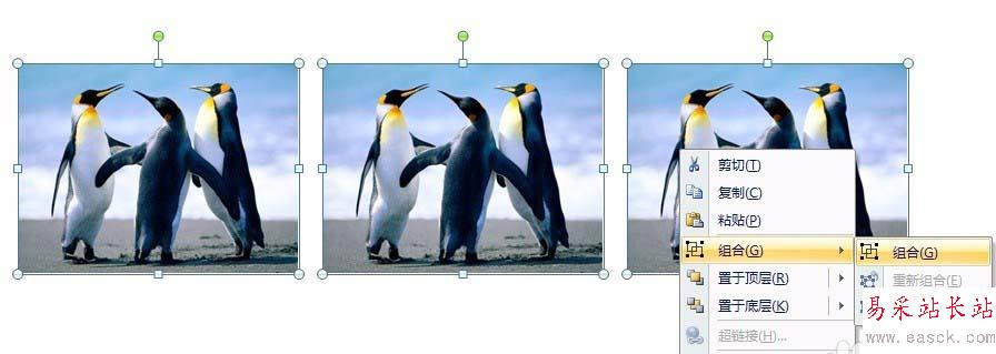 3、選中圖片,鼠標右鍵選擇組合——組合。