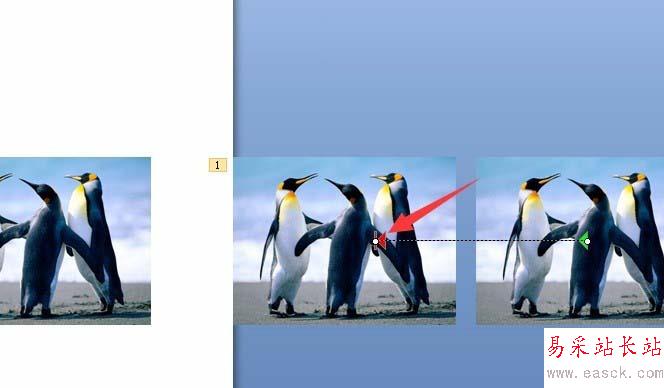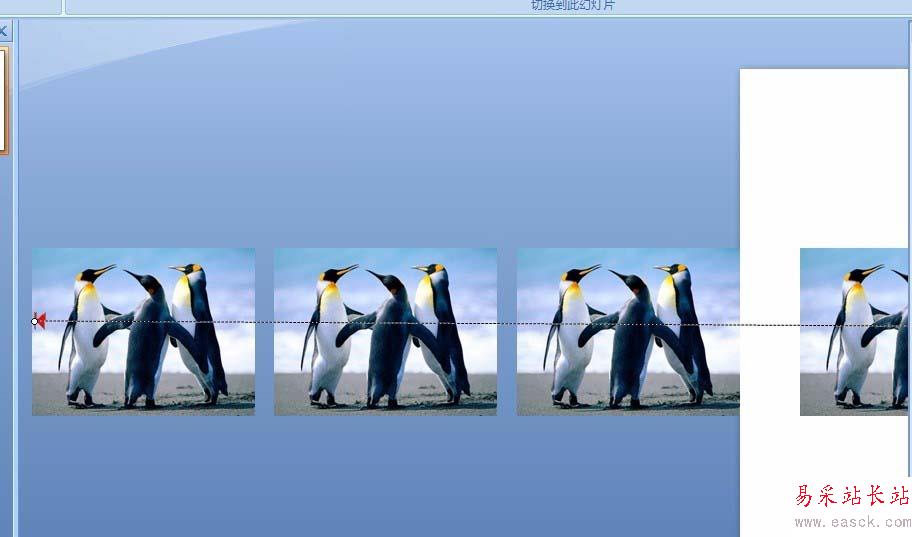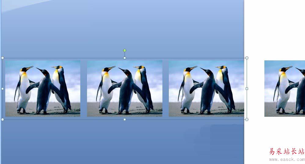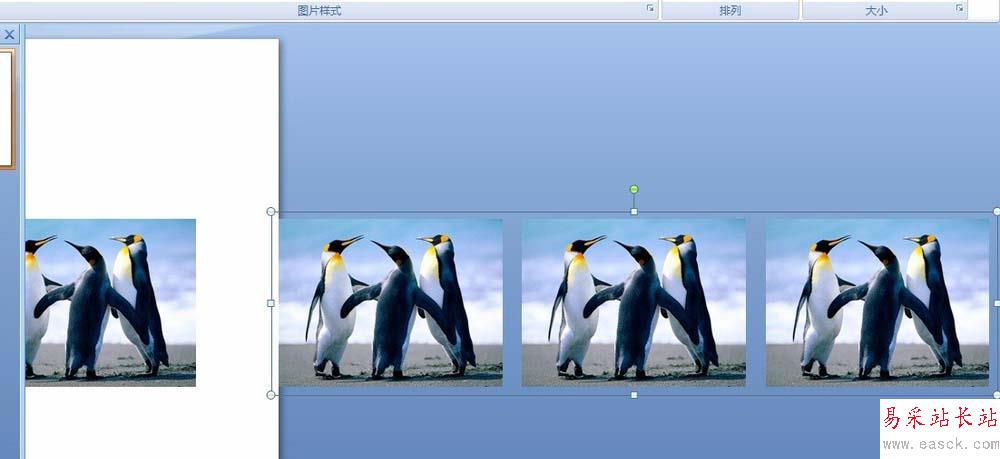 8、選中左邊界外的圖,按Del鍵刪除。選中幻燈片內(nèi)的圖,按Del鍵刪除。也就是說只留下最右邊的復制圖