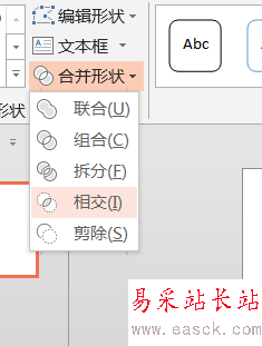 8、點(diǎn)擊“格式”選項卡,在“合并形狀”中選擇相交。