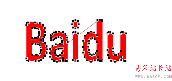10、這個時候我們可以看如圖所示的效果,文本上會出現(xiàn)很多的編輯頂點(diǎn)。