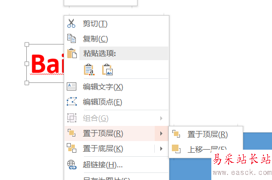 6、右擊剛剛插入的文本框,在彈出的菜單中選擇“置于頂層”