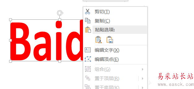 9、這個我們文本框就變成一個普通對象,我們可以直接拖動句柄進(jìn)行放大。右擊在彈出的菜單中選擇“編輯頂點(diǎn)”