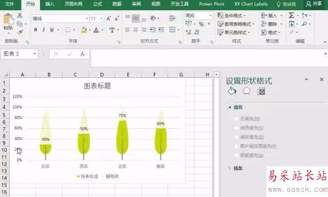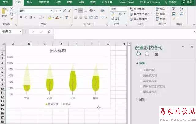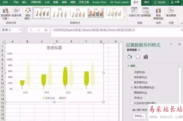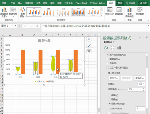3、用圖片替換柱子。在柱形圖上點擊代表任務達成列的柱子,右鍵單擊,選擇設置數據系列格式。
